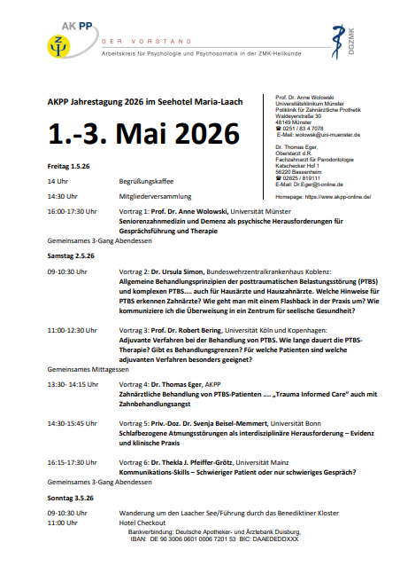 Arbeitskreis für Psychologie und Psychosomatik in der Zahnheilkunde Priv.-Doz. Dr. Anne Wolowski Fax: +49 (0)251-8347083 E-Mail: wolowsk@uni-muenster.de